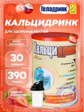Кальций & магний Кальцидринк (CALCIDRINK) + Шейкер 390 г + шейкер, Клубника ГЕЛАДРИНК Подписка на товар Артикул 55151