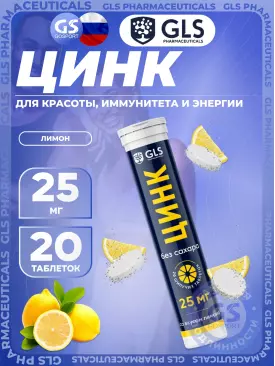 Цинк Цинк 25 мг, без сахара 20 шипучих таблеток, Лимон GLS pharmaceuticals Подписка на товар Артикул 55829