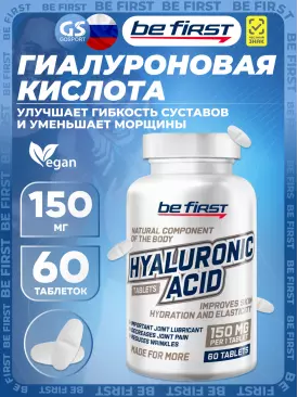 -18% 980 q 1 195 q 1 195 q 000 Гиалуроновая кислота Hyaluronic Acid 150 mg 60 таблеток Be First В корзину Артикул 46588