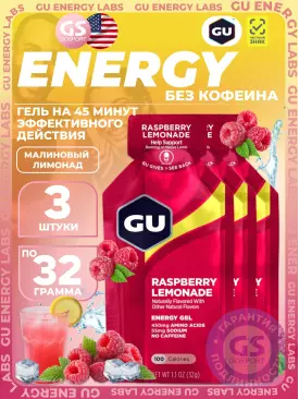 Энергетический гель питьевой GU Original Energy Gel no caffeine 3 x 32 г, Малиновый лимонад GU Energy Labs Подписка на товар Артикул 52128