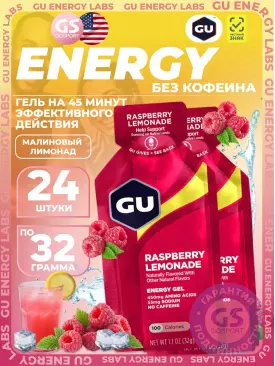 Энергетический гель питьевой GU Original Energy Gel no caffeine 24 x 32 г, Малиновый лимонад GU Energy Labs Подписка на товар Артикул 52127