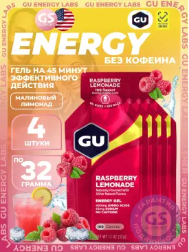 Энергетический гель питьевой GU Original Energy Gel no caffeine 4 x 32 г, Малиновый лимонад GU Energy Labs Подписка на товар Артикул 52132