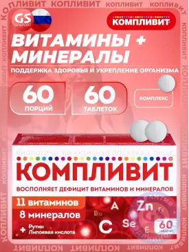 Витаминный комплекс Витаминно-минеральный комплекс 60 таблеток Компливит Подписка на товар Артикул 56997