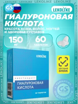 -20% 872 q 1 090 q 1 090 q 000 Гиалуроновая кислота Гиалуроновая кислота 150 мг 60 таблеток LEKOLIKE В корзину Артикул 56741