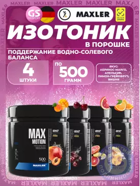 Изотоник Max Motion 4 х 500 г, Абрикос-манго, Апельсин, Лимон-грейпфрут, Вишня MAXLER Подписка на товар Артикул 45188