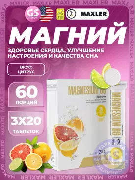 -10% 320 q 356 q 356 q 000 Магний Магний B6 в шипучках 20 шипучих таблеток, Цитрус MAXLER В корзину Артикул 51910