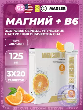 -10% 320 q 356 q 356 q 000 Магний Магний B6 в шипучках 20 шипучих таблеток, Апельсин MAXLER В корзину Артикул 56297