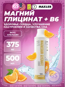 -10% 1 880 q 2 089 q 2 089 q 000 Магний Magnesium Glycinate Liquid 14 x 25 мл, Апельсин MAXLER В корзину Артикул 51282
