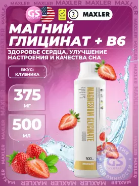 -10% 1 880 q 2 089 q 2 089 q 000 Магний Magnesium Glycinate Liquid 14 x 25 мл, Клубника MAXLER В корзину Артикул 51283