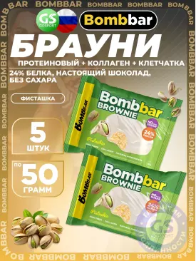 -25% 609 q 812 q 812 q 000 Протеиновый батончик Печенье глазированное Brownie 5 x 50 г, Фисташка BombBar В корзину Артикул 57648