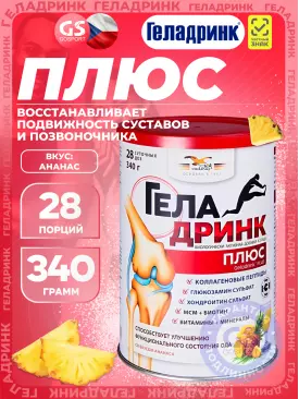 -20% 3 532 q 4 415 q 4 415 q 000 Комплекс хондропротекторов Плюс (Geladrink Plus) 340 г, Ананас ГЕЛАДРИНК В корзину Артикул 2946