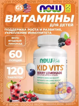 Витамины для детей Kid Vits 120 жевательных таблеток, Ягодный лимонад NOW Foods Подписка на товар Артикул 54260