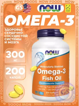 -12% 3 757 q 4 270 q 4 270 q 000 Омега-3 Omega-3 300 mg 300 гелевых капсул NOW Foods В корзину Артикул 52136