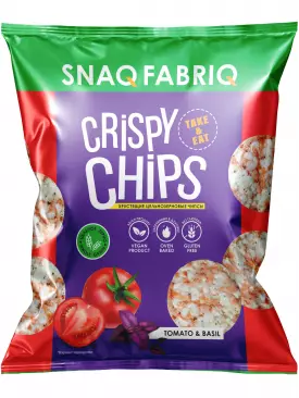 -22% 69 q 88 q 88 q 000 Чипсы Crispy Chips цельнозерновые 50 г, Томат и базилик SNAQ FABRIQ В корзину Артикул 50726