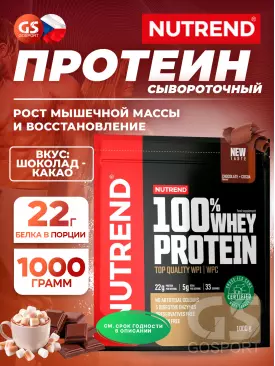 Сывороточный протеин 100% Whey Protein 1000 г, Шоколад - Какао NUTREND Подписка на товар Артикул 43979