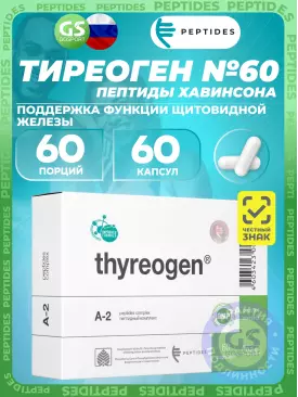 -18% 5 400 q 6 585 q 6 585 q 000 Пептиды Хавинсона Тиреоген (Thyreogen) 60 капсул PEPTIDES В корзину Артикул 55606
