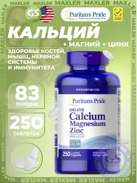 -20% 720 q 900 q 900 q 000 Кальций & магний Calcium Magnesium Zinc 100 таблеток Puritan's Pride В корзину Артикул 56819