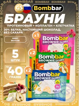 -22% 632 q 810 q 810 q 000 Протеиновый батончик Печенье глазированное Brownie Quadro 5 x 40 г, Микс 3 BombBar В корзину Артикул 57663