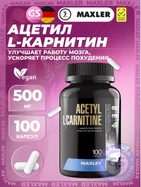 -10% 1 890 q 2 100 q 2 100 q 000 Ацетил L-Карнитин Acetyl L-Carnitine 500 mg 100 капсул MAXLER В корзину Артикул 2713