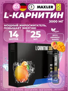 -10% 1 740 q 1 933 q 1 933 q 000 L-Карнитин жидкий L-Carnitine 3000 mg 14 x 25 мл, Абрикос-манго MAXLER В корзину Артикул 52659