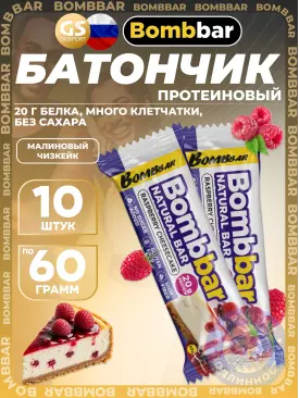 -24% 1 354 q 1 782 q 1 782 q 000 Протеиновый батончик Protein Bar 10 x 60 г, Малиновый чизкейк BombBar В корзину Артикул 50331