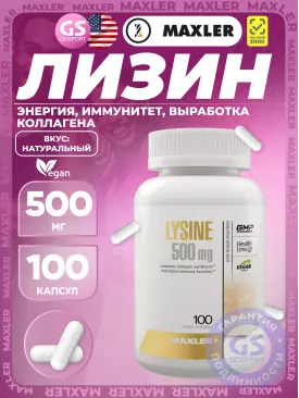 -10% 980 q 1 089 q 1 089 q 000 Лизин Lysine 500mg 100 вегетарианских капсул MAXLER (USA) В корзину Артикул 44826
