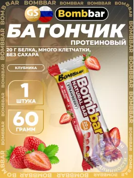 -22% 139 q 178 q 178 q 000 Протеиновый батончик Protein Bar 60 г, Клубника BombBar В корзину Артикул 2431