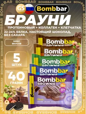 -22% 632 q 810 q 810 q 000 Протеиновый батончик Печенье глазированное Brownie 5 x 40 г, Микс 5 BombBar В корзину Артикул 57665
