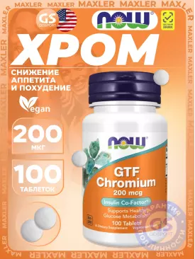 -20% 895 q 1 119 q 1 119 q 000 Хром GTF Chromium 200 mcg 100 таблеток NOW Foods В корзину Артикул 3655