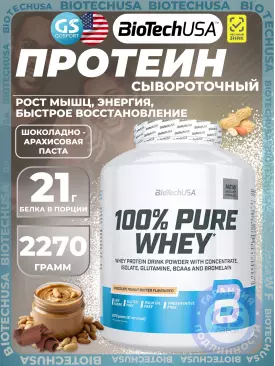 Сывороточный протеин 100% Pure Whey 2270 г, Шоколадно-арахисовая паста BioTechUSA Подписка на товар Артикул 57430