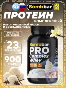 Комплексный протеин Pro Complex Whey 900 г, Ванильное мороженое BombBar Подписка на товар Артикул 52379
