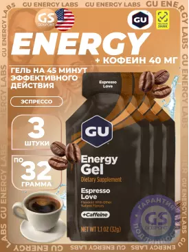 Гель питьевой GU Original Energy Gel 40mg caffeine 3 x 32 г, Эспрессо Лав GU Energy Labs Подписка на товар Артикул 49174