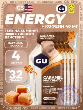 Гель питьевой GU Original Energy Gel 40mg caffeine 4 x 32 г, Карамель-Макиато GU Energy Labs Подписка на товар Артикул 49188
