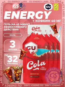 Гель питьевой GU Original Energy Gel 40mg caffeine 3 x 32 г, Кола GU Energy Labs Подписка на товар Артикул 49178