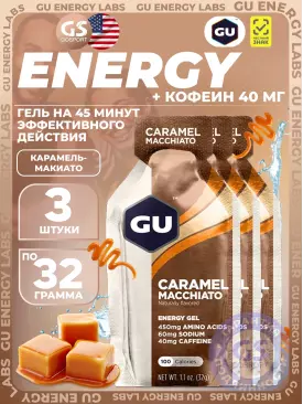 Гель питьевой GU Original Energy Gel 40mg caffeine 3 x 32 г, Карамель-Макиато GU Energy Labs Подписка на товар Артикул 49176