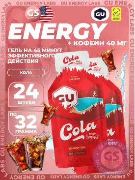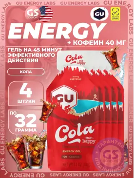 Гель питьевой GU Original Energy Gel 40mg caffeine 4 x 32 г, Кола GU Energy Labs Подписка на товар Артикул 49190