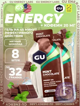 Гель питьевой GU Original Energy Gel 20mg caffeine 8 x 32 г, Мятный шоколад GU Energy Labs Подписка на товар Артикул 49345