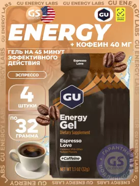 Гель питьевой GU Original Energy Gel 40mg caffeine 4 x 32 г, Эспрессо Лав GU Energy Labs Подписка на товар Артикул 49186
