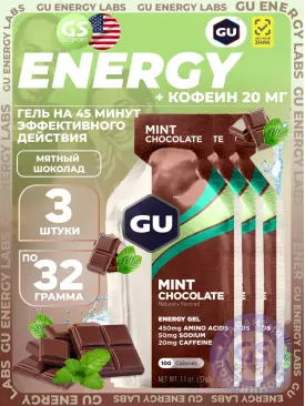 Гель питьевой GU Original Energy Gel 20mg caffeine 3 x 32 г, Мятный шоколад GU Energy Labs Подписка на товар Артикул 49177