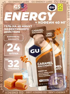 Гель питьевой GU Original Energy Gel 40mg caffeine 24 x 32 г, Карамель-Макиато GU Energy Labs Подписка на товар Артикул 587