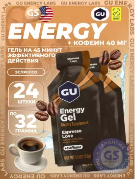 Гель питьевой GU Original Energy Gel 40mg caffeine 24 x 32 г, Эспрессо Лав GU Energy Labs Подписка на товар Артикул 583