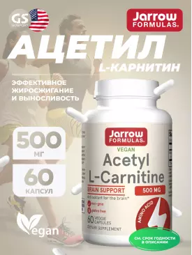 Ацетил L-Карнитин Acetyl L-Carnitine 500 mg 60 веган капсул Jarrow Formulas Подписка на товар Артикул 56587