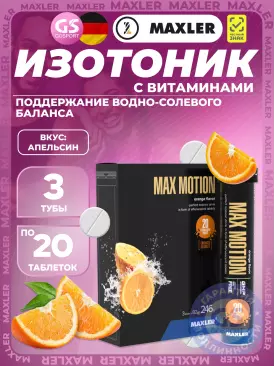 Изотоник Max Motion Effervescent 3х20 шипучих таблеток, Апельсин MAXLER Подписка на товар Артикул 53517