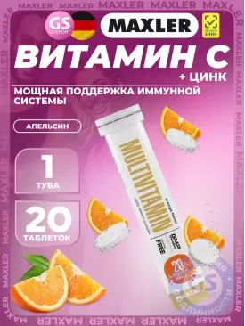 Витамин C Vitamin C + Zinc Effervescent Tablets 1 х 20 таб, Апельсин MAXLER Подписка на товар Артикул 44856