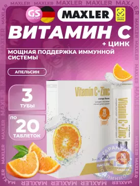 Витамин C Vitamin C + Zinc Effervescent Tablets 3 х 20 таб, Апельсин MAXLER Подписка на товар Артикул 51449