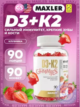 Витамин D D3+K2 Gummies 90 жевательных пастилок, Клубника MAXLER (USA) Подписка на товар Артикул 50928