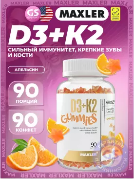 Витамин D D3+K2 Gummies 90 жевательных пастилок, Апельсин MAXLER (USA) Подписка на товар Артикул 50929