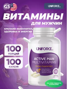-12% 1 443 q 1 640 q 1 640 q 000 Витамины для мужчин Active Man Multivitamins 100 капсул Uniforce В корзину Артикул 50731
