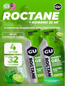 Гель питьевой GU ROCTANE Energy Gel 35mg caffeine 4 x 32 г, Соленый лайм GU Energy Labs Подписка на товар Артикул 56497