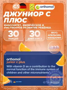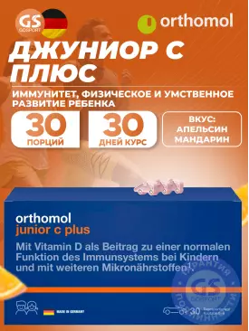 Витамины для детей Junior C plus курс 30 дней, Апельсин-Мандарин Orthomol Подписка на товар Артикул 1936